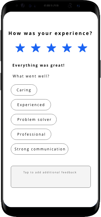 When you leave feedback for a health facility, you’ll be asked to select a star rating from 1 to 5. If you leave a perfect rating of 5, you’ll then have the opportunity to give a facility Kudos. If you leave a rating less than 5, you’ll be able to leave a facility constructive feedback. The screen to the right should give you some insight into how our review process works and also highlights the five potential Kudos that health facilities can give to you.